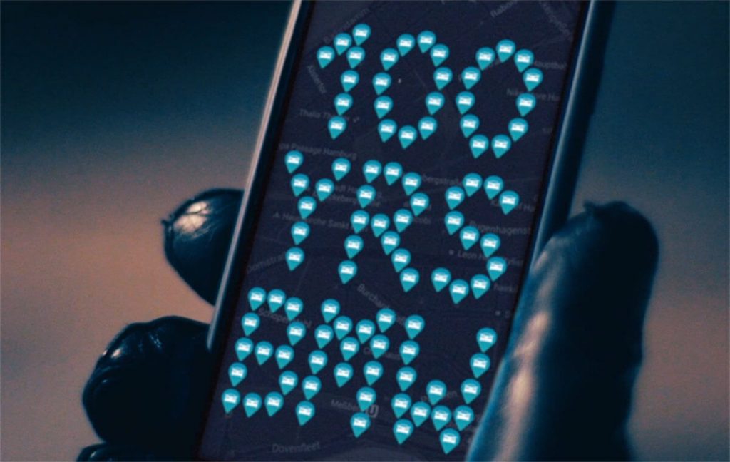 How can a newly founded agency pitch for one of world’s biggest car brands without even being asked? During the night before the official 100th birthday of BMW we used the BMW’s popular car sharing App – DriveNow – to locate 100 BMW vehicles. Each of the cars send a GPS signal with its exact location on the map. We used that and placed 100 car sharing BMW’s on special places to form one bold birthday greeting: 100 YEARS BMW.