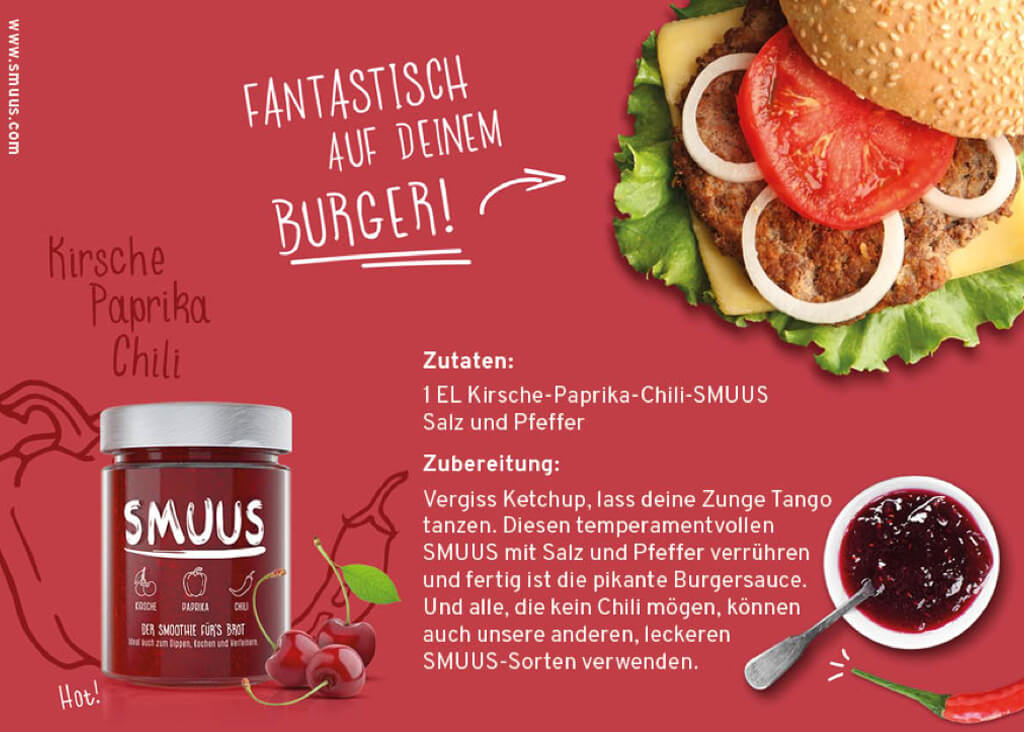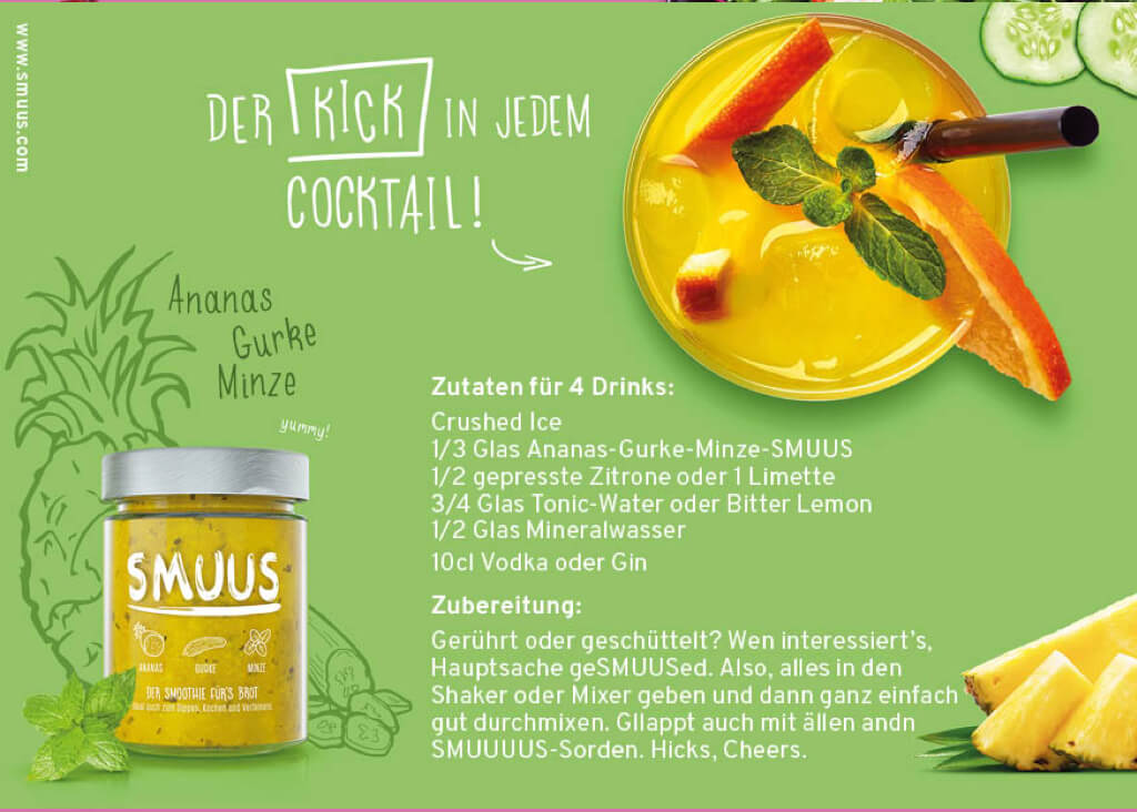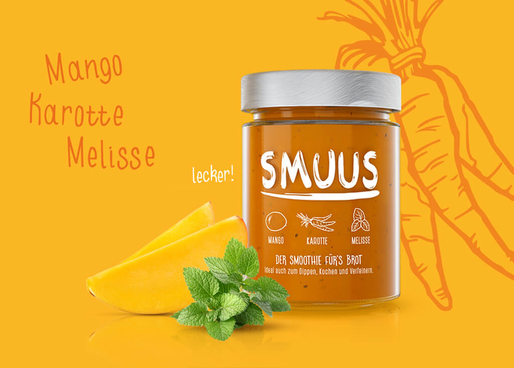 In 2015 MAYD started its very own and unique food product: SMUUS – the smoothie for your bread. It comes in a range of 6 different flavors – low in sugar – and is always made of 3 components: fruits, vegetables and spices. To promote our bold product not only in the German market but worldwide we started a bold digital campaign by making provocative but still entertaining statements against the politics of Donald Trump. We have even created the peach flavoured special edition “SMUUS Empeachment” to donate 10% of the proceeds to non profit organisations like ACLU.